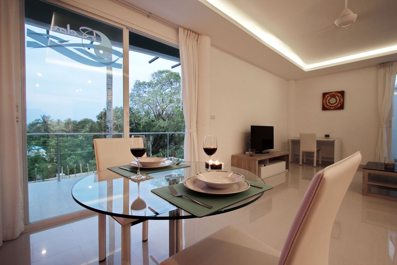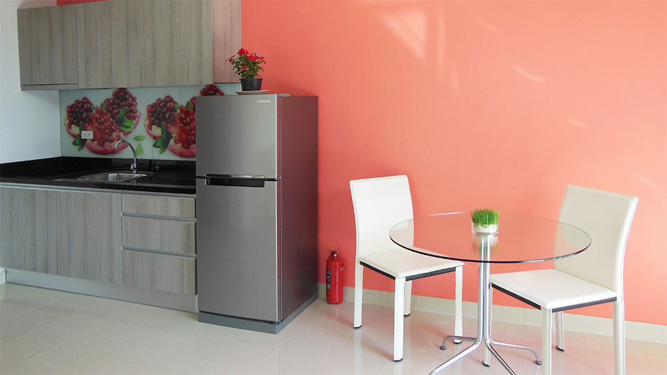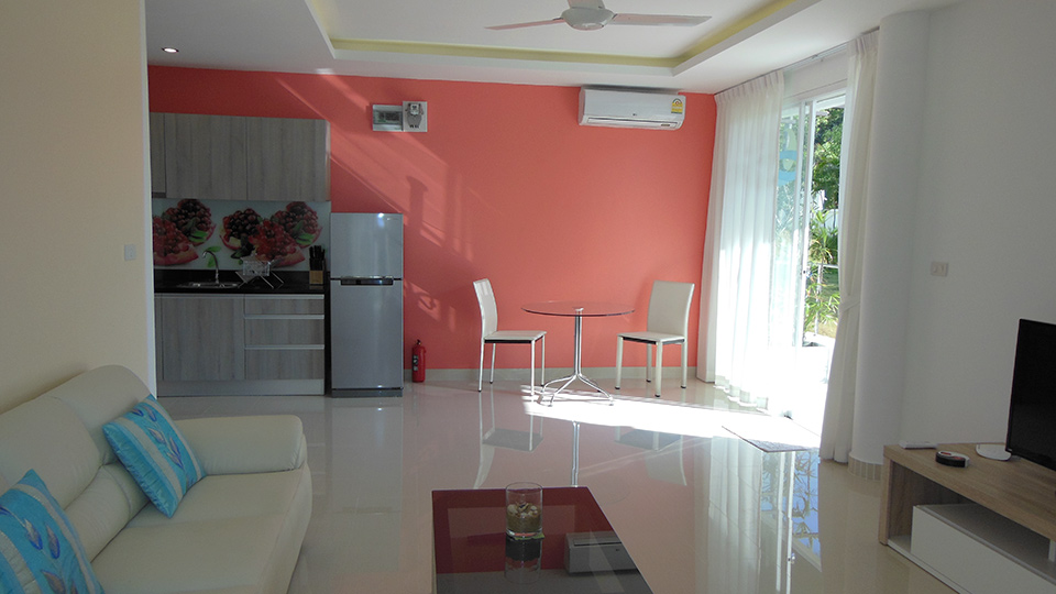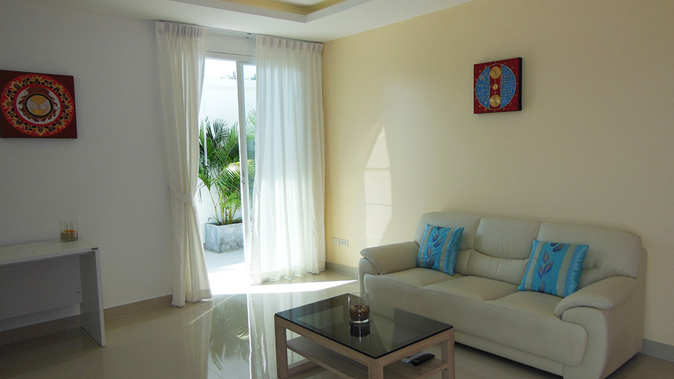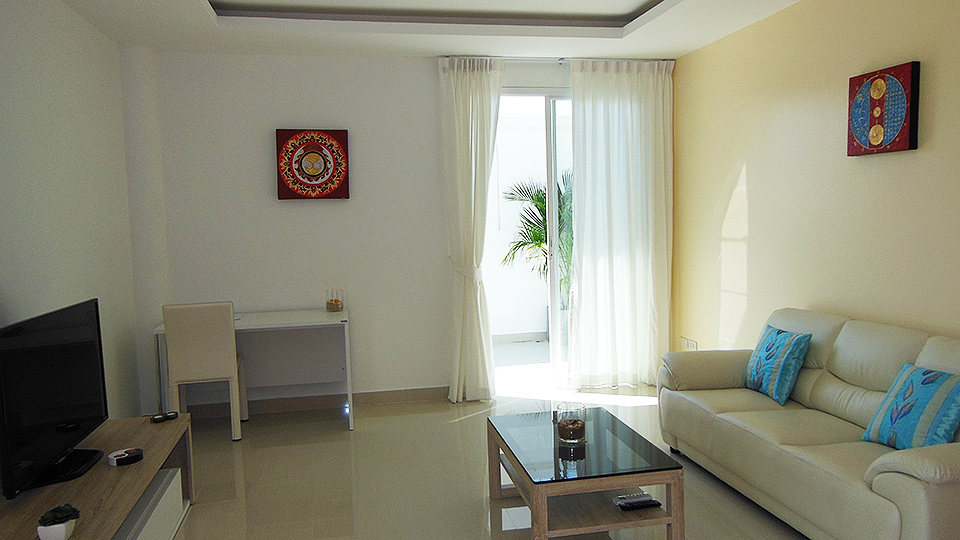 1 bedroom, 1 bathroom, fully furnished kitchen, living room, terrace, air conditioners, cable TV, WiFi, common swimming pool and garden.